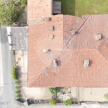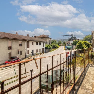 Em Zubiena, uma casa de dois andares com pátio privativo, construída em tijolos intertravados, localizada no centro da cidade.