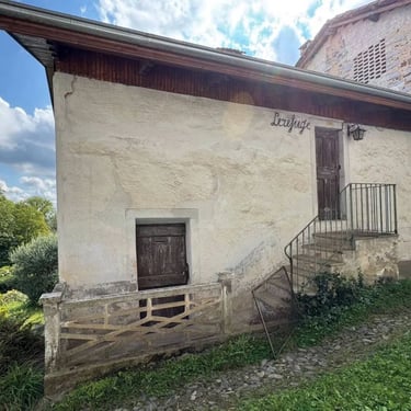 Na parte alta da vila de Tavigliano, uma charmosa casa independente de três lados com jardim frontal.