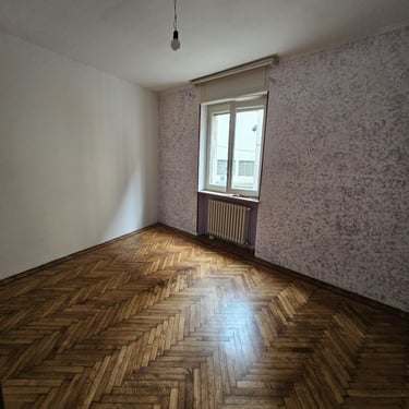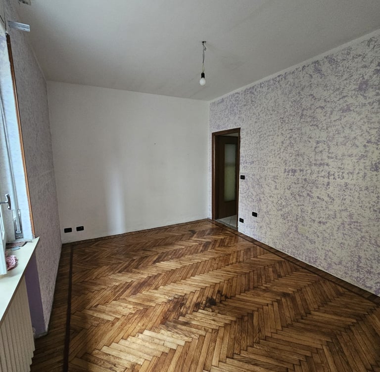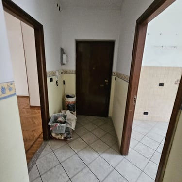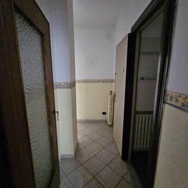 Vou levá-lo ao centro da cidade, na Via Sella 40, no primeiro andar de um edifício construído por volta das décadas de 1950 ou 1960, mas com entrada interna. Depois de um lance de escadas e pela porta da frente, você encontrará a cozinha à esquerda, com uma varanda voltada para o sul. A parede embutida oferece uma área de cozinha de 2,5 metros e uma mesa para acomodar confortavelmente pelo menos quatro pessoas. Em frente fica a sala de estar, também com varanda. Continuando pelo corredor, você encontrará o banheiro com chuveiro e janela, e ao lado, o quarto principal.